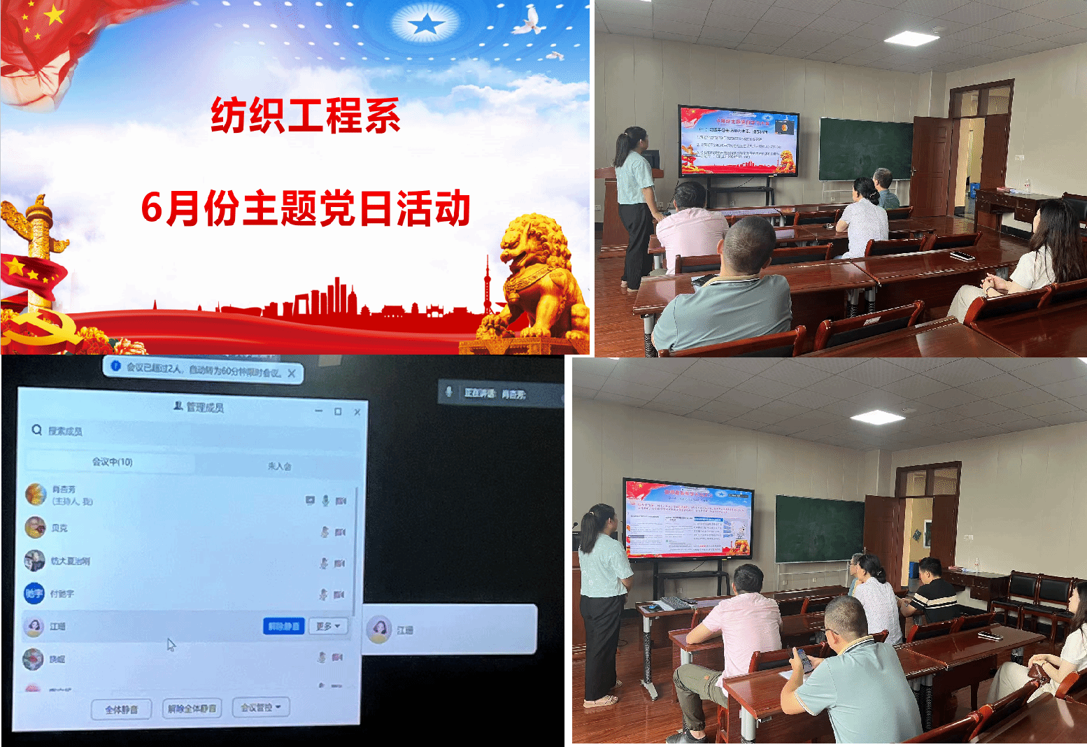 为了不断提升党员的政治素养和道德品质,增强法律意识和纪律观念,严格自我要求和约束,树立良好的形象和口碑。6月20日上午,国产直播 非织支部在国产直播 学生一站式服务中心以“坚定理想信念,永葆党员本色”为核心主题开展主题党课。支部书记吴童玲老师通过身边师生生动的故事、鲜活的案例和朴实的语言,讲述纺大党员遵规守纪、奋进新征程、建功新时代的故事。希望大家能学习他们坚守初心、对党忠诚的政治品格,立足岗位、尽忠职守的使命担当以及奋勇拼搏为人先,...