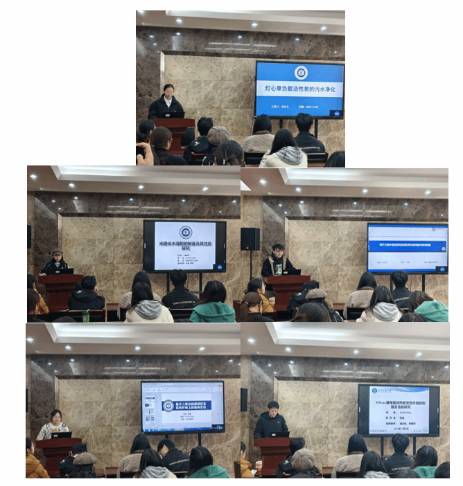 论坛上,刘东方、梁南月、黄乐乐、高慧、张晨五位同学依次介绍了自己的研究课题和目前取得的研究进展,并分享了自己的科研经验。主讲同学研究课题包括灯心草负载活性炭、光固化水凝胶、芳纶基同轴纤维传感器、二氧化硅微球、Mxene基电驱动热致变色纤维。契合了“纺织新材料及绿色加工”主题,代表了学院最新研究进展,参会人员积极提出问题和建议,营造了良好的学术氛围。