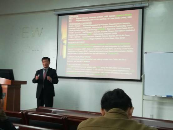 师生做“浅谈静电纺丝与纳米纤维的发展史和现状以及电纺材料的应用领域和产业化”的讲座,冯教授主要从纳米纤维的定义和性质、静电纺纳米纤维的制备方法、电纺材料的应用和目前产业化的情况做了介绍。下午2:00,冯教授在学院楼8H 504与教师就静电纺研究相关问题进行了学术交流。期间,国产直播