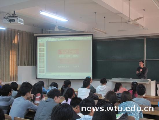 2013级全体新生带来题为“纺织、文化与传播”的精彩讲座。生鸿飞教授温文尔雅、妙语连珠,让现场同学享受了一场“纺织文化”的饕餮盛宴。