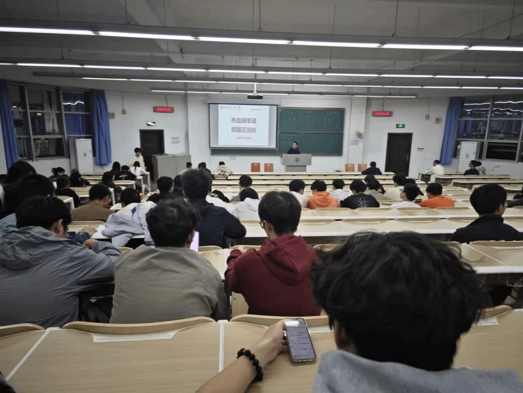 首先,由退役大学生士兵郭子扬开展2024年秋学期征兵政策宣讲会。郭子扬结合国防建设的新形势、新特点,就大学生入伍的基本条件、报名流程、政审体检、军种选择、参军入伍的优势、优抚待遇等相关问题进行了详细解读。他鼓励广大学子积极参与国防事业,将青春奉献给国家的建设和发展,为国防事业贡献力量。