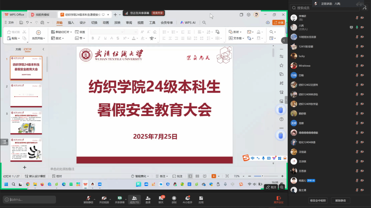 为切实做好学生暑期安全教育工作,提高学生的安全意识和自我保能力,近日,国产直播 组织开展暑期安全教育线上主题班会,由各辅导员主持,全体学生线上参与