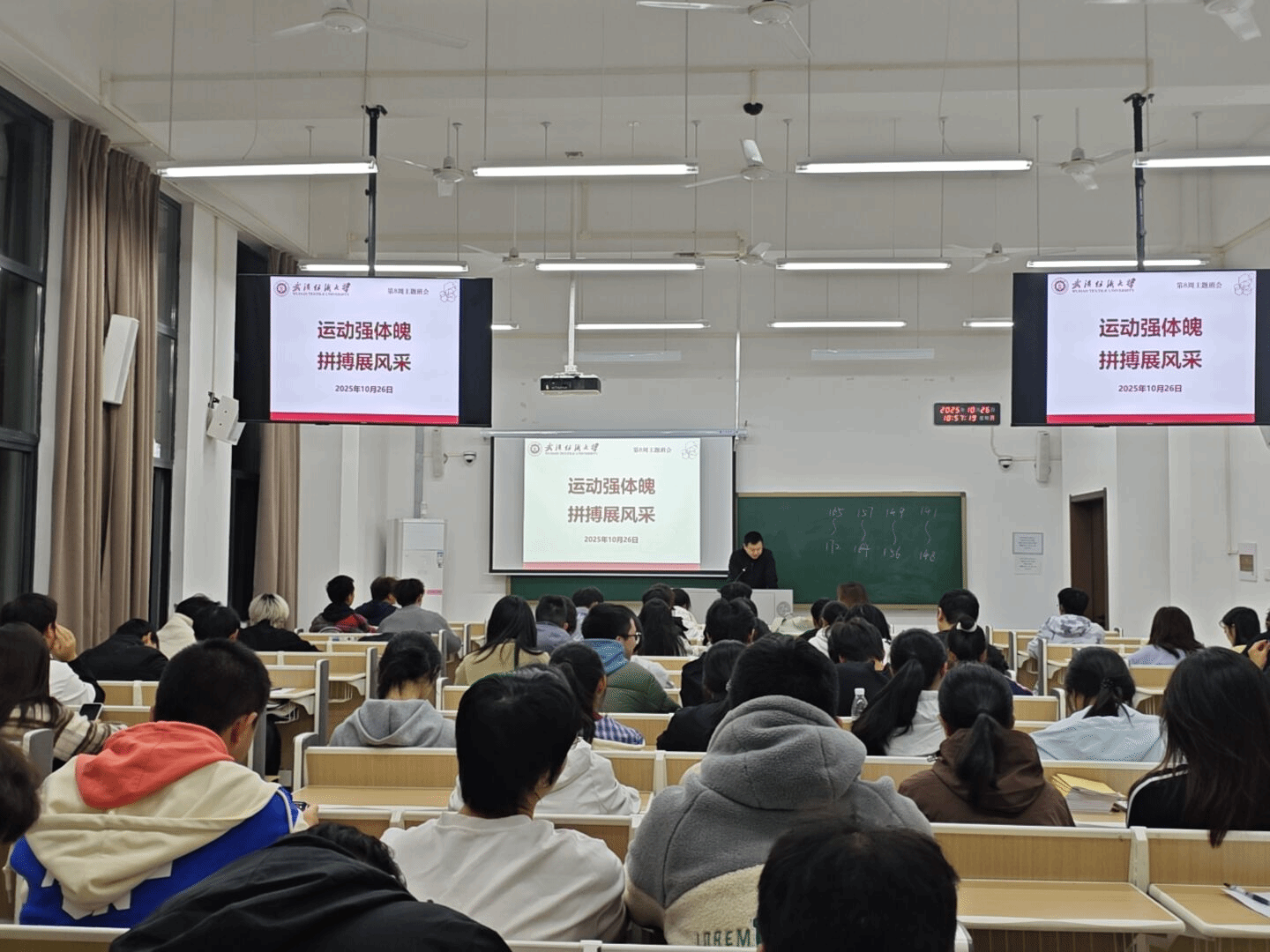 班会还结合学校“一站式”学生社区安全文明寝室评选要求,强调文明寝室是“环境育人”的重要载体,号召学生以爱国卫生运动为抓手,营造“安全有序、文明和谐”的社区生态,实现“体育强基”与“文明修身”双向赋能。
