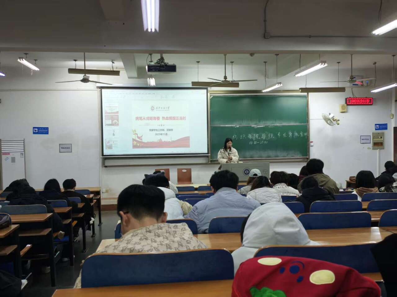 组织各班级开展“携笔从戎砺青春,热血报国正当时”主题班会。各班辅导员、班主任主持活动,全体本科生参与。
