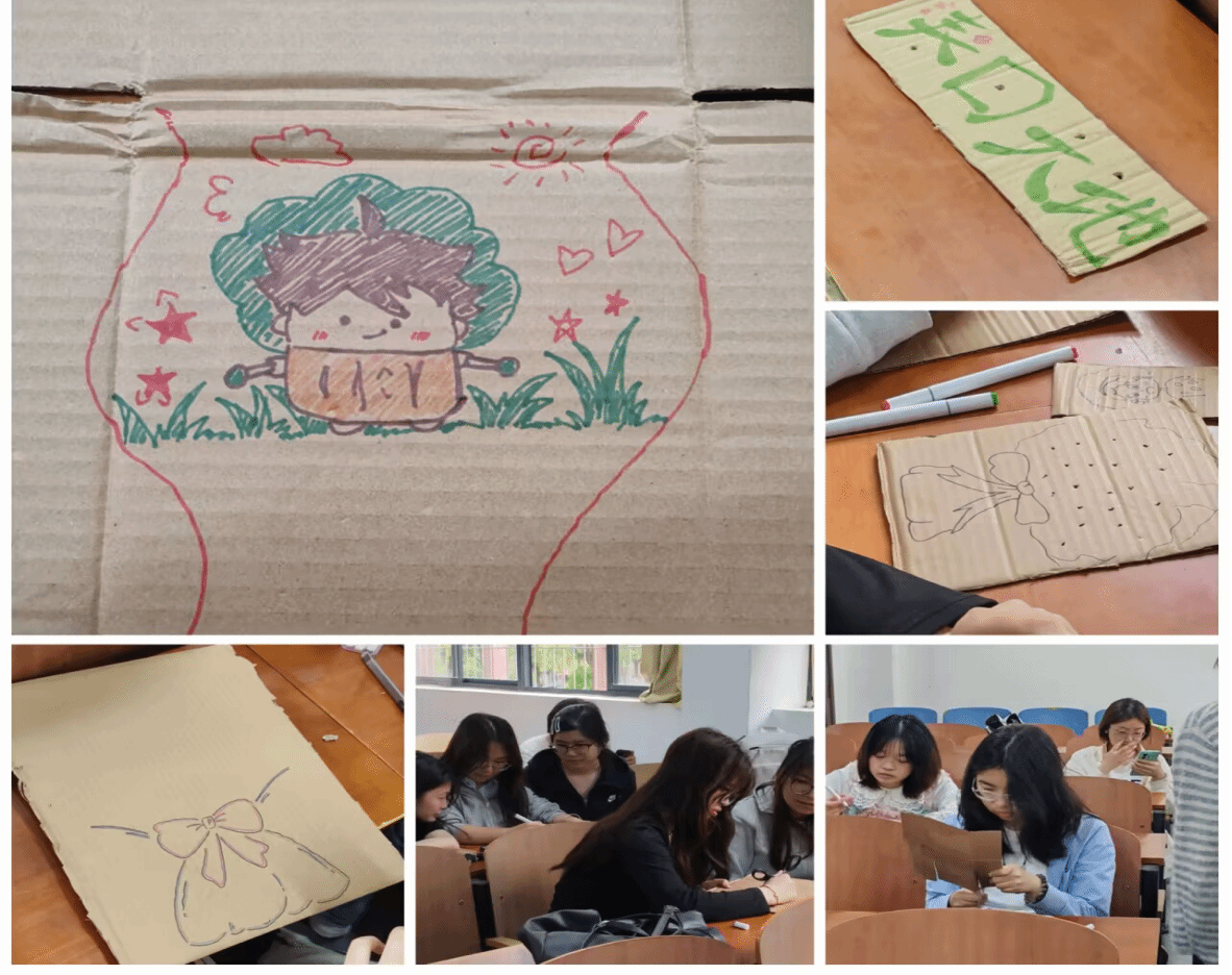 本次团体辅导以纸板插花为主题,旨在通过创意手工的形式,提升同学们的团队协作能力,释放学习压力,同时激发大家的创造力与审美能力。同学们充分发挥创造力,利用色彩斑斓的纸板,精心剪裁、折叠、拼接,制作出五彩缤纷的花瓶。活动现场,色彩斑斓的纸板、剪刀、胶水等工具一应俱全。同学们巧妙地裁剪、精心地粘贴,将普通的纸板变成了一件件精美的插花作品。