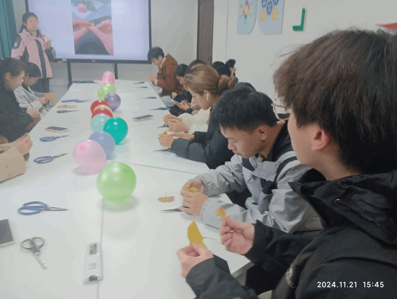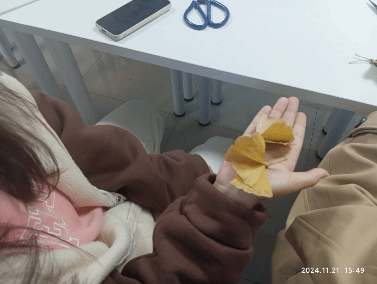 “织心湾”二级心理站于11月21号下午,在13栋“织争朝夕”学生服务一站式社区开展了“银杏作蝶,放飞秋天的尾巴”手工活动。