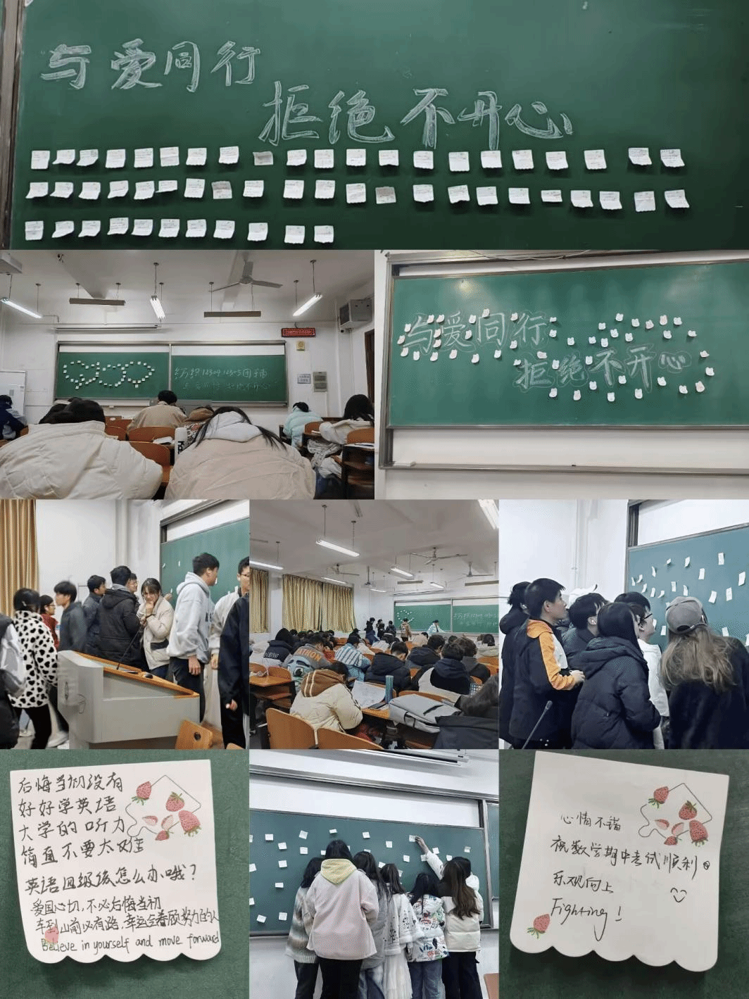 此次活动用便利贴的形式,让大家敞开了心扉,用文字来书写内心的感受,以真心换真心,放飞自己的烦恼,收获他人的祝福,每个人焦虑与不安也在大家的欢声笑语中烟消云散。这是纺织学院加强对学生心理健康教育的有力实践与落实,同学们在活动中增进了交流,放松了心情,宣泄了压力,学到了如何缓解焦虑和压力,还收获了珍贵的友谊和快乐,也让心理健康教育成为纺院的一道亮丽风景。