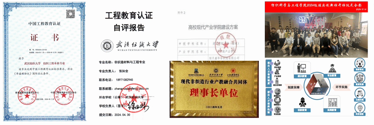4.非织造材料与工程自评报告通过,专业建设增添新动能。纺织工程专业认证复评通过,非织造材料与工程专业自评报告通过。获批省级非织造产业学院。成立“智能可穿戴技术”拔尖创新人才培养班,探索交叉创新人才培养新模式。
