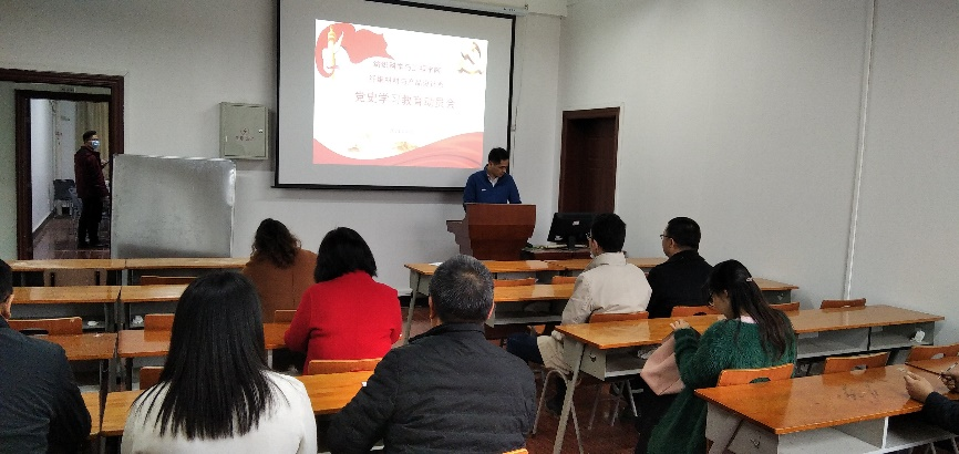 会上,支部书记罗磊指出,2021年是中国共产党成立100周年,党中央决定在全党开展党史学习教育,把“学党史、悟思想、办实事、开新局”总要求贯穿学习教育全过程,注重融入日常、抓在经常,把党史学习教育落实在立德树人根本任务中。
