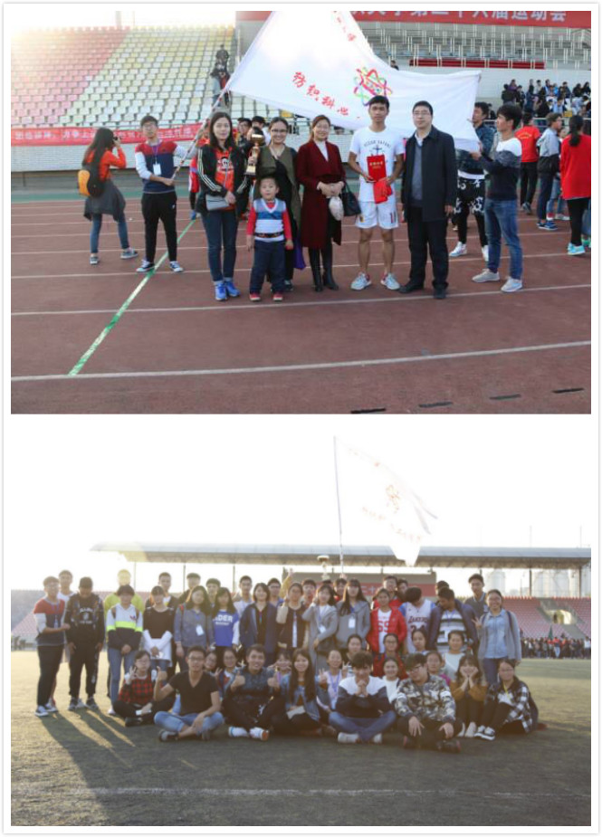 张明老师获教工组铅球第一名,郭洪涛同学获男子100m、200m、4*100m接力三项第一,龙浩帆同学获跳远第一名,由我院肖娟老师与新生为主组成的师生14人组获女子60m接力第一名。