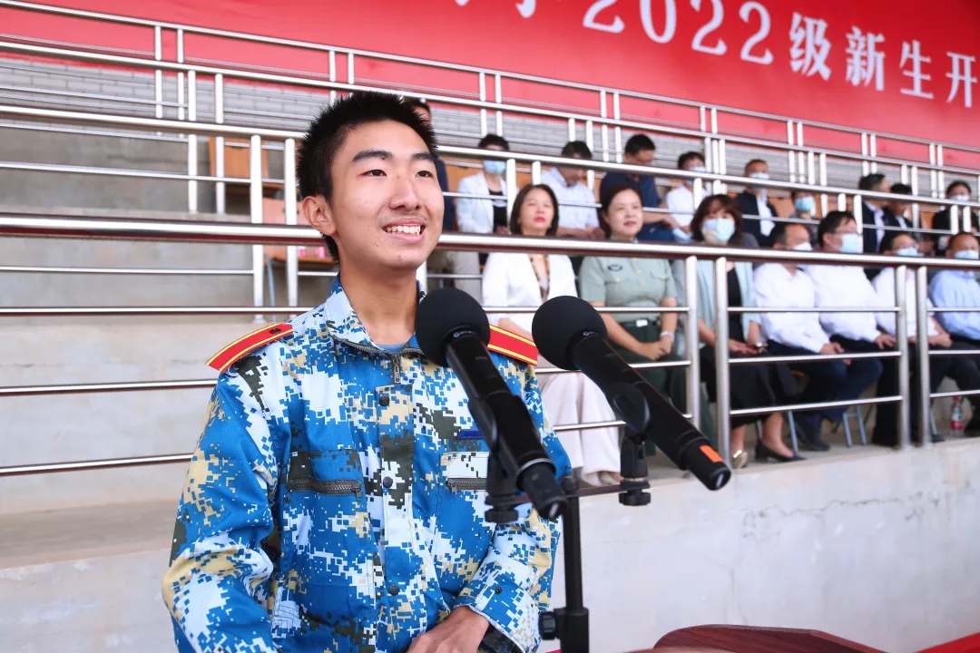 纺织类12202班袁熙桐作为2022级新生代表在开学典礼上发言