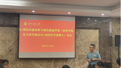 第二场论坛:技术研究院2018-2022年新进的博士青年教师及部分研究生参加了此次论坛,技术研究院党委书记兼院长(主任)涂耀威,先进纺纱织造及清洁生产国家地方联合工程实验室主任王金凤教授,纺织纤维及制品教育部重点实验室党支部书记、副主任李沐芳教授,纺织纤维及制品教育部重点实验室副主任刘轲教授出席本次论坛,本次论坛由纺织纤维及制品教育部重点实验室党支部副书记贾康昱主持。