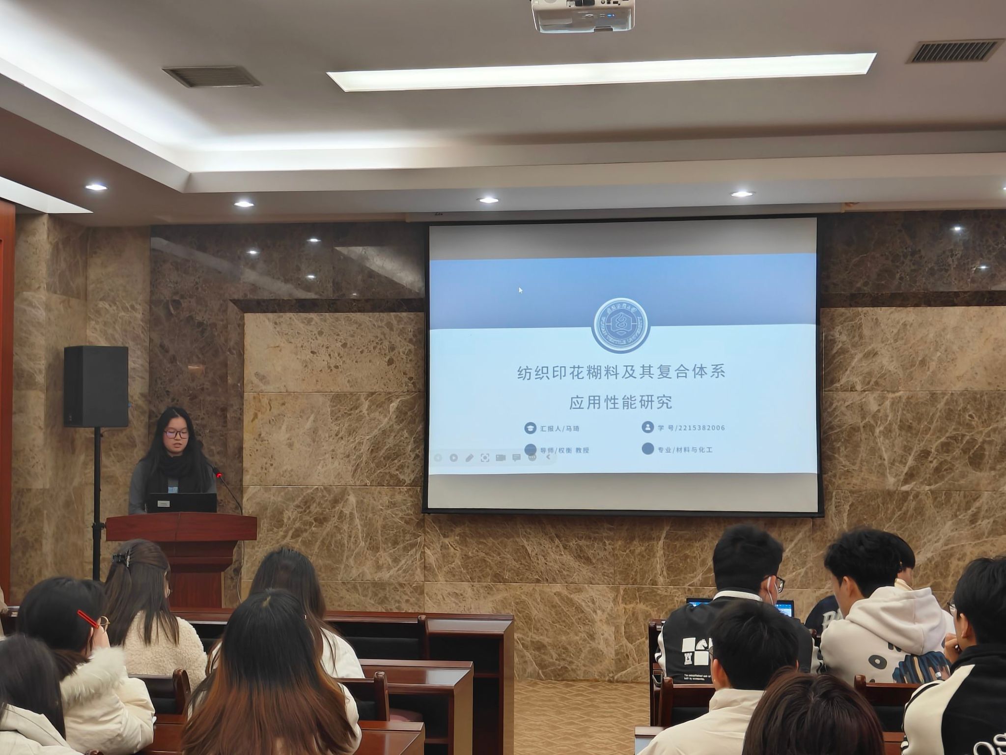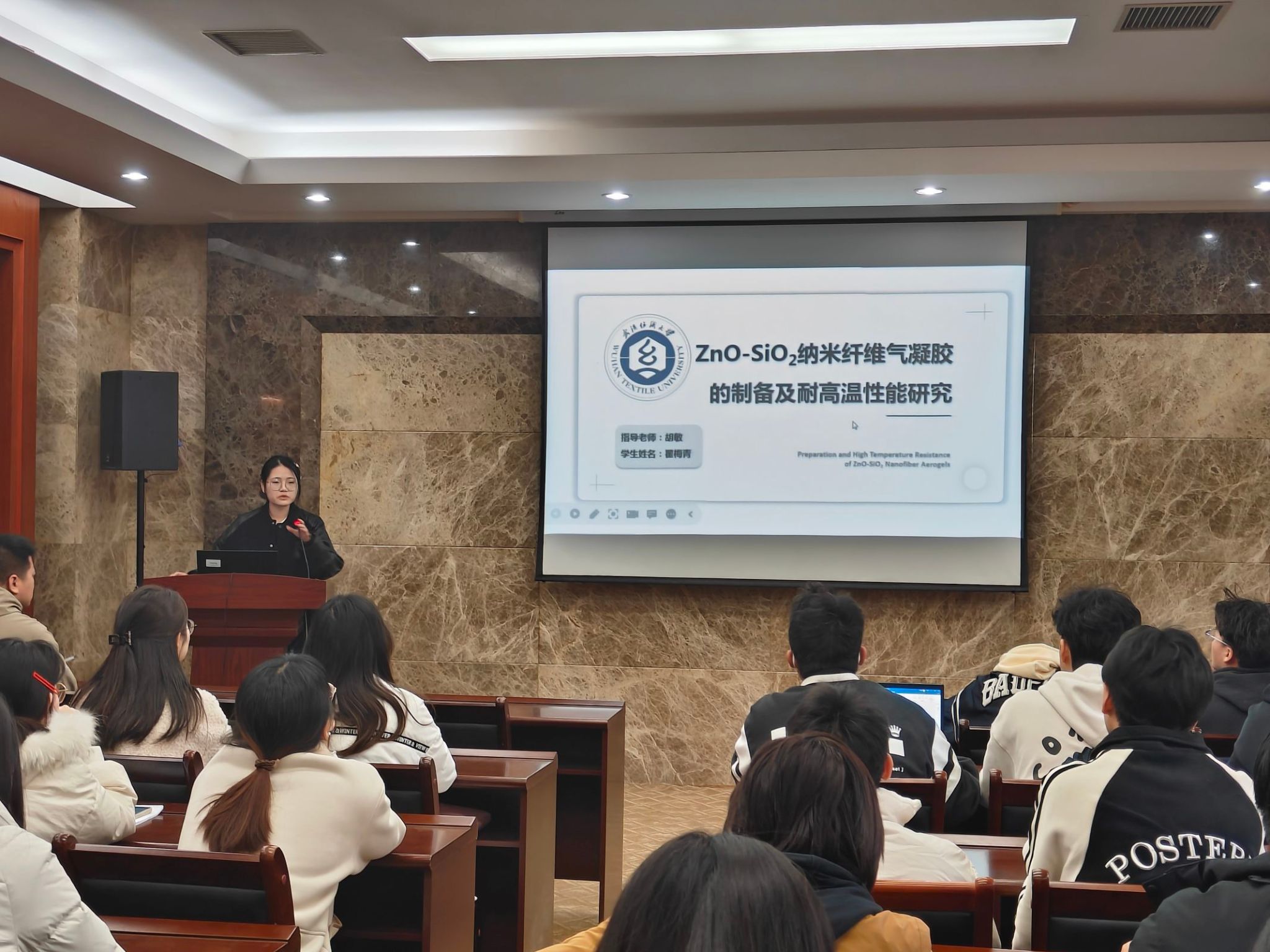 论坛上,辛利、翟梅青、马琦、屈雪茹四位同学依次介绍了自己的研究课题以及目前取得的研究进展,并分享了自己的科研项目和经验。主讲同学的研究课题包括芳纶短纤增强聚氨酯护舷材料力学性能研究、超轻耐高温纳米纤维气凝胶的制备与性能研究、纺织印花糊料及其复合体系应用性能研究、具有超阻燃和可重复火灾报警响应性能的复合气凝胶纤维用于消防服,契合了“纺织新材料及绿色加工”主题,代表了学院最新研究进展,参会人员积极提出问题和建议,营造了良好的学术氛围。