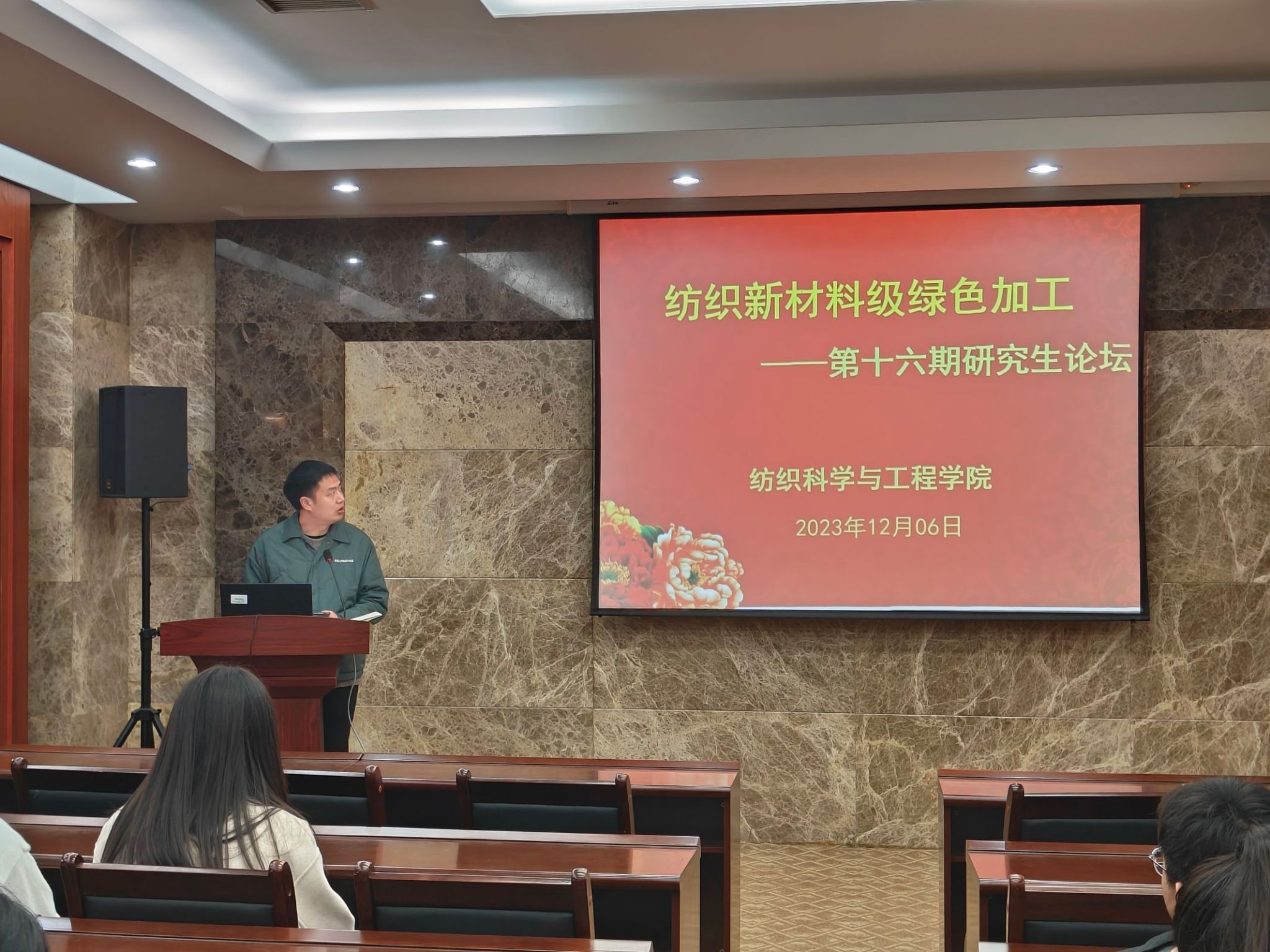 首先,张文老师介绍了举办研究生论坛的主旨和意义,同时宣布第十六期“纺织新材料及绿色加工”研究生论坛开始。