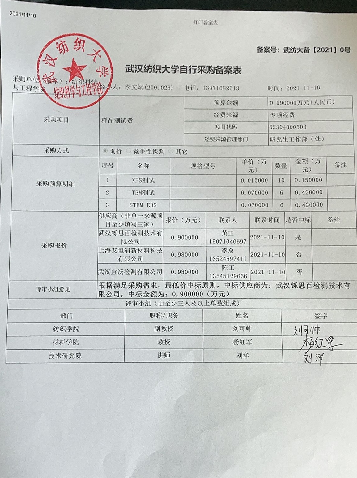 关于样品测试费的公示