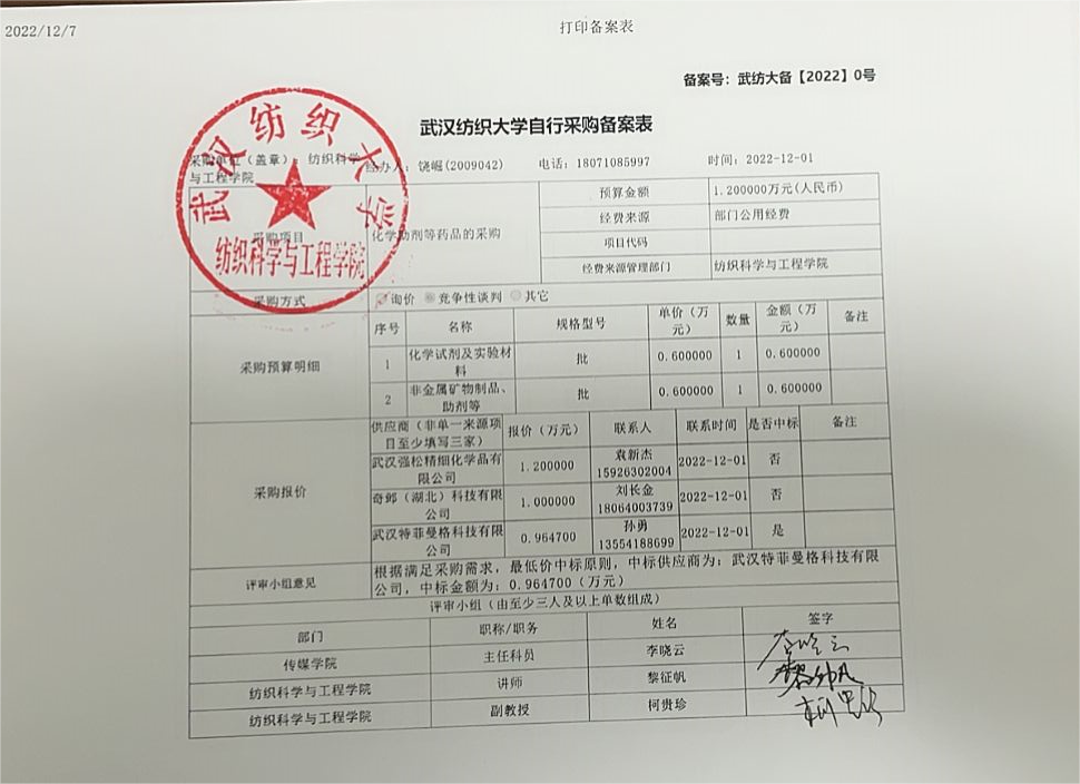 关于化学助剂等药品的采购公示