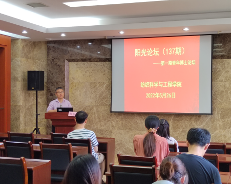 论坛上,曾贝妮、张瑞、黄颖三位老师分别以“废旧纺织品中纤维素的提取和利用”、“UHMWPE纤维/金属层合面板对超轻多功能三明治结构抗侵彻性能的影响研究”、“再生医学及仿生矿化领域中天然有机高分子材料的应用研究”为题介绍了自己的研究课题和目前取得的研究进展,并分享了自己的科研经验。主讲内容涵盖了纤维素、复合材料、天然有机高分子材料等领域,契合了“纺织新材料及绿色加工”主题,代表了学院最新研究进展,营造了良好的学术氛围。