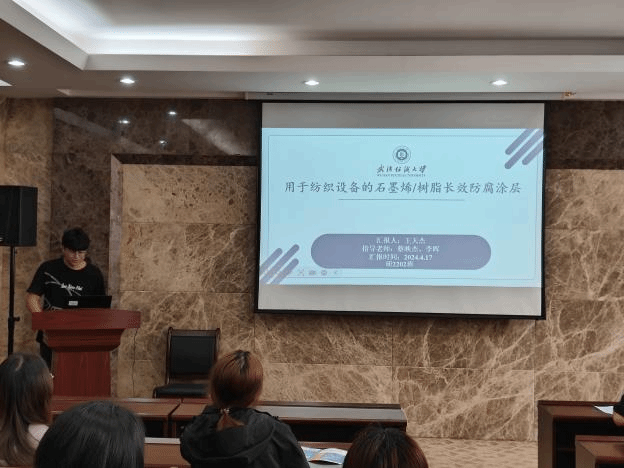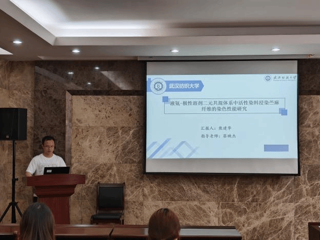论坛上,王天杰、卜炎龙、柴英、孙静静、熊建华和姚依婷六位同学依次介绍了自己的研究课题和目前取得的研究进展,并分享了自己的科研经验。主讲同学的研究课题包括石墨烯/树脂、板栗壳色素、三维机织复合材料、丝素基神经导管、液氨-极性溶剂二元共混体系中活性染料、三维核壳结构蒸发器,契合了“纺织新材料及绿色加工”主题,代表了学院最新研究进展,参会人员积极提出问题和建议,营造了良好的学术氛围。