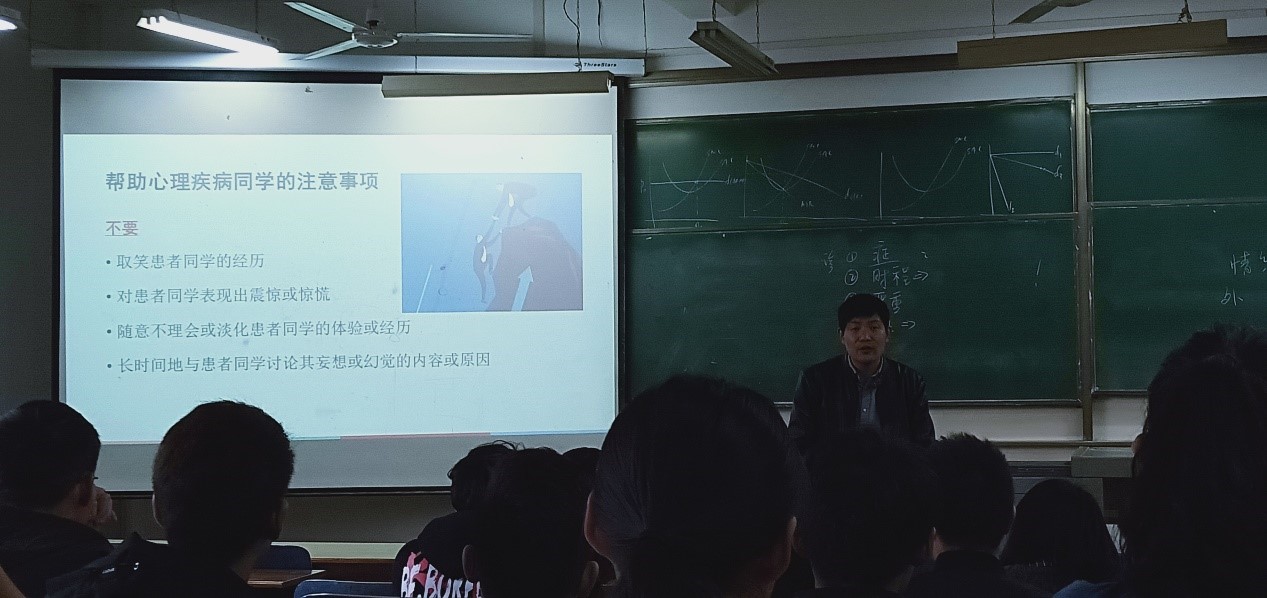 最后,赵老师提出帮助心理疾病同学的注意事项,告诫同学们,如果有幸成为倾听者同学们们一定要帮助患者做好保密工作,当然也存在保密例外,当有些心理病患者产生自杀想法,也要及时告诉有帮助的人。