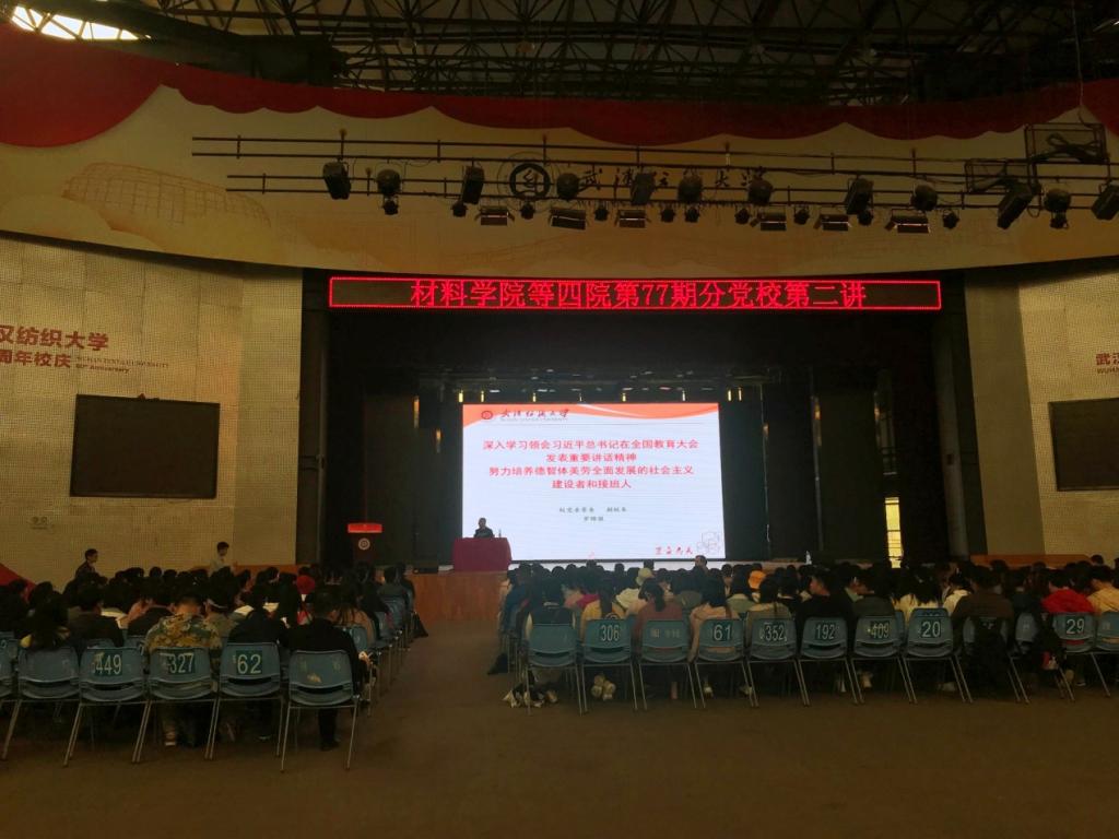 、材料学院、管理学院和机械学院四院于3月28日在大学生活动中心召开了以“深入学习习近平总书记在全国教育大会发表重要讲话精神,努力培养德智体美劳全面发展的社会主义建设者和接班人”为主题的党课活动,本次党课由校党委常委罗锦银主持主讲。