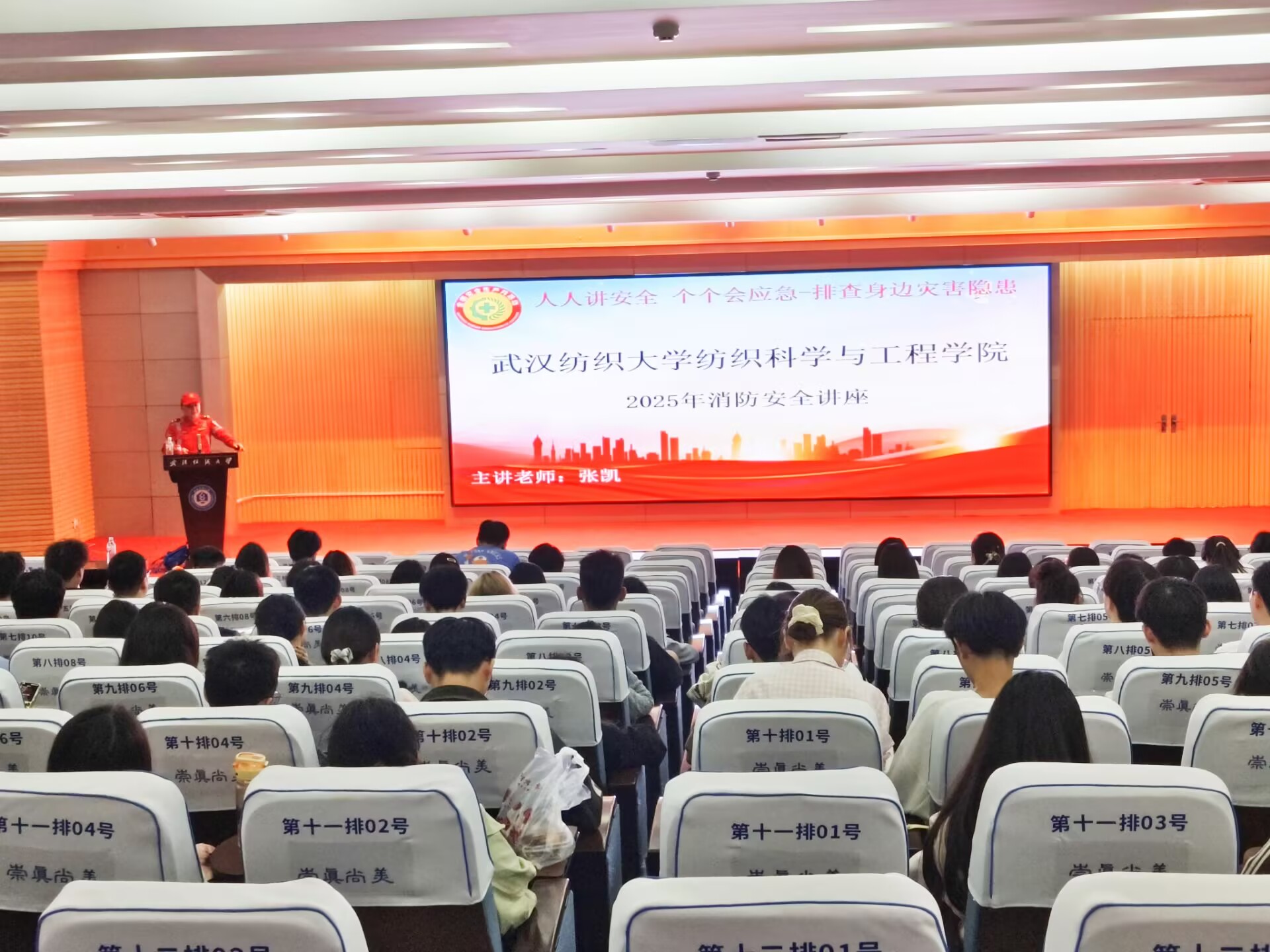 张凯结合近年来全国及高校典型火灾案例,以触目惊心的数据揭示了当前火灾形势的严峻性,并针对校园火灾特点,重点讲解了火灾应对的核心要点,梳理了学校宿舍、实验室等重点区域的常见火灾隐患。针对这些隐患,他逐一给出了具体的防范建议,提醒同学们规范用电行为,不使用“三无”电器产品,不在宿舍内给电动车及电池充电,从源头上杜绝火灾风险。