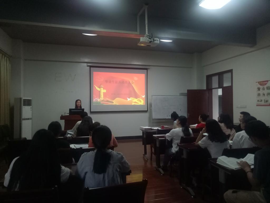 针对全院学生开展应征入伍宣讲,学院辅导员严蔷薇、肖娟、李亮分别对所带学生组织主题班会教育。