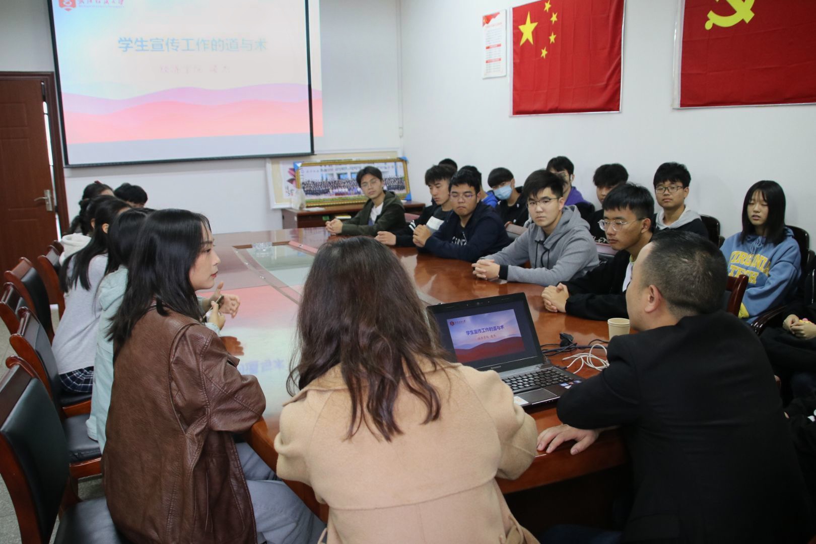 青年媒体中心于(写8号教学楼的别称)召开宣传思想工作队伍培训会。邀请经济学院辅导员凌杰老师作专题培训。会议由辅导员吴童玲老师主持,国产直播