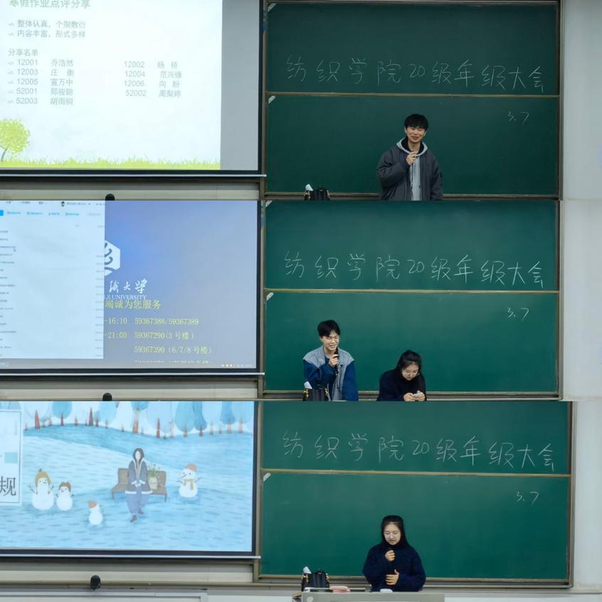 大会伊始,吴童玲老师先对同学们的寒假作业进行了点评与总结,并邀请了各班代表分享自己丰富多彩的寒假生活。接下来吴童玲老师对上学期的期末成绩做了分析统计,指出上学期普遍出现的问题,提醒同学们对学习要引起高度重视和警惕,并强调同学们要摆好学习态度,做好未来的学习规划和时间管理。吴童玲老师又从人身安全、财产安全、出行安全、校园安全、网络安全、心理安全六个方面进行安全教育,给新学期的学生提了个醒。最后,吴童玲老师说明了近期工作安排,并提出了几点对同学们的要求。