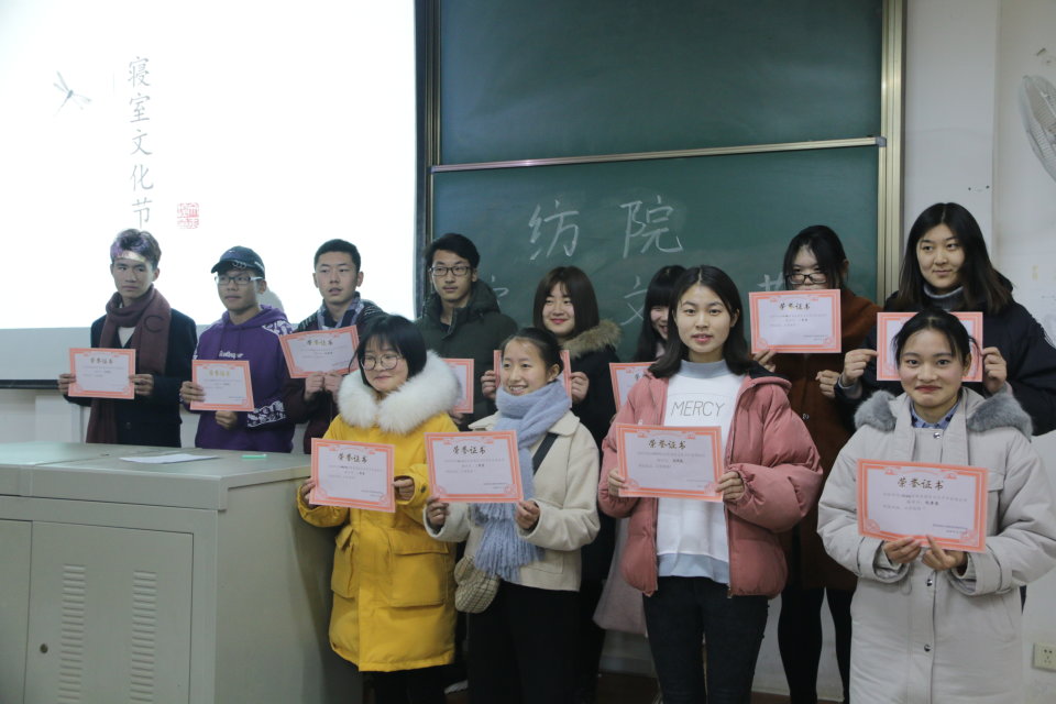 为了展现学生宿舍风采,创建更加美丽的宿舍文化,纺院学生会宿管会举办了纺院宿舍文化节并表彰优秀党员宿舍。12月9日17:00,宿舍文化节评选活动于8F-T101成功举行。院党委副书记汪仕辉,团委书记李亮,辅导员肖娟、严蔷薇,以及学生会主席团成员等人参加此次活动并担任评委。此次活动共有来自纺院的12个宿舍进行最终评选。