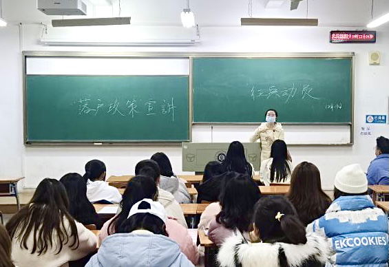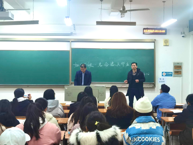 党委副书记陈海,辅导员严蔷薇、李亮、吴童玲及纺织12004班全体成员参与此次讲座。