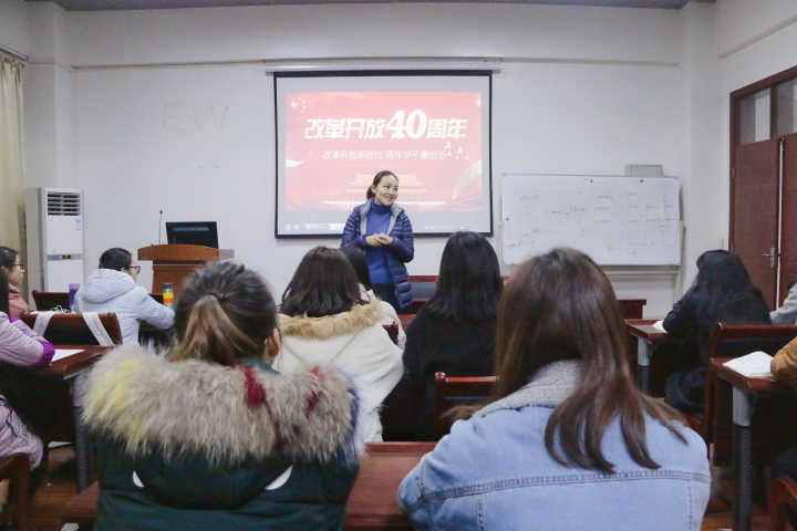 为庆祝改革开放40周年,12月26日下午,纺织工程11603班团支部在8H502教室开展“改革开放新时代,青年学子勇担当”主题团日活动。校团委书记段薇静,学院党委副书记汪仕辉,以及团委书记、辅导员老师出席此次活动。