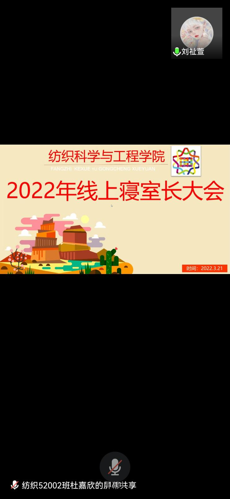 于2022年3月21日晚通过腾讯会议开展全院寝室长大会。本次大会由院团委宿管会组织筹办,院党委副书记陈海、团委书记张竣青、各寝室长共同参与。