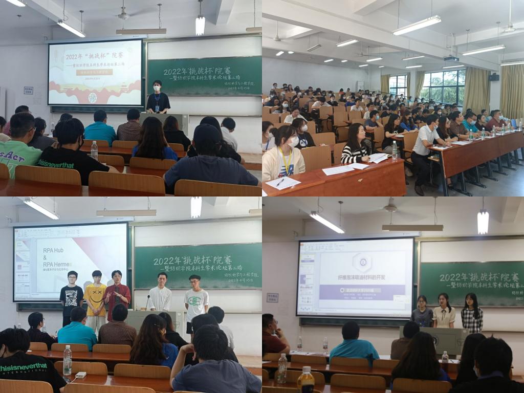 挑战杯院赛进行了总结,肯定了各位参赛选手在准备比赛过程中的不懈努力,并希望各位在座的同学们能够向参赛选手学习,期待同学们能够同挑战杯的宗旨一样—崇尚科学、追求真知、勤奋学习、锐意创新、迎接挑战。