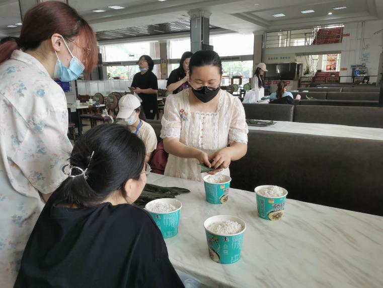 同时,老师们也参与到大家的活动中来,和同学们一起包粽子,品味不一样的端午。