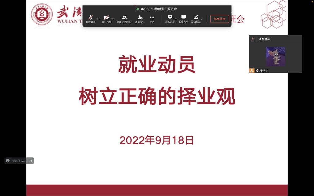 于9月18日在线上开展2023届毕业生就业动员会,2019级辅导员李巧中主持会议,2019级全体毕业生参加会议。