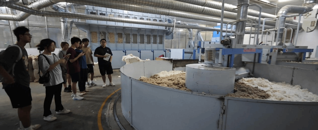 “纺编青春”实践队走进武汉汉麻生物科技有限公司,深入学习汉麻原材料的加工过程,熟悉加工工艺以及纺织机器的实际运作。