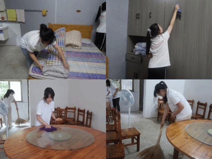 早上8时,迎着朝霞,实践团成员带着敬老慰问品来到了红安县祥林康养院。队员们走进房间开始打扫卫生,认真整理床铺,擦拭桌面、窗台,清扫地面,还贴心的叠好衣物、摆放物品,让房间变得整洁温馨。实践团用朴实而真诚的行动表达着对老人们的关爱,屋内暖意融融,一片欢声笑语。