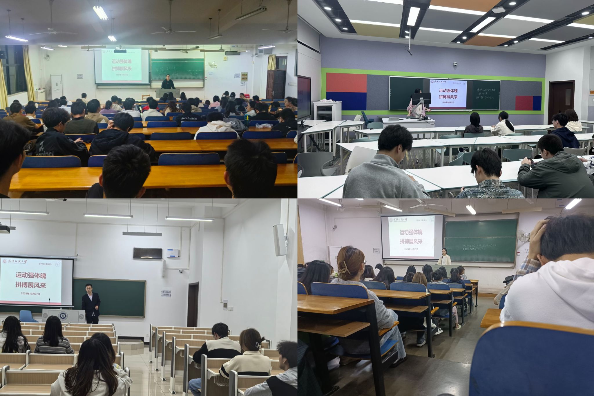 于10月27日开展了“运动强体魄,拼搏展风采”的主题班会。本次班会由各年级辅导员、班主任主持,全体学生共同参与。