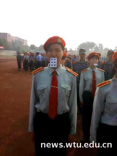 威严的教官,严酷的天气,以及那稚嫩的脸庞构成了训练场上的幅幅画面。挺胸抬头的标准化军姿配备装置扑克牌,使得枯燥的军训变得别具风格。不管是教官的创意训练方法,还是真正的严格要求,这样做真的能让人觉得这就是军训,每一个动作每一个细节都必须一丝不苟,军令如山啊。新生嘴里叼的是扑克牌,心里却是对军训的敬畏,对自己今后人生的思考,越苦痛,越奋进。