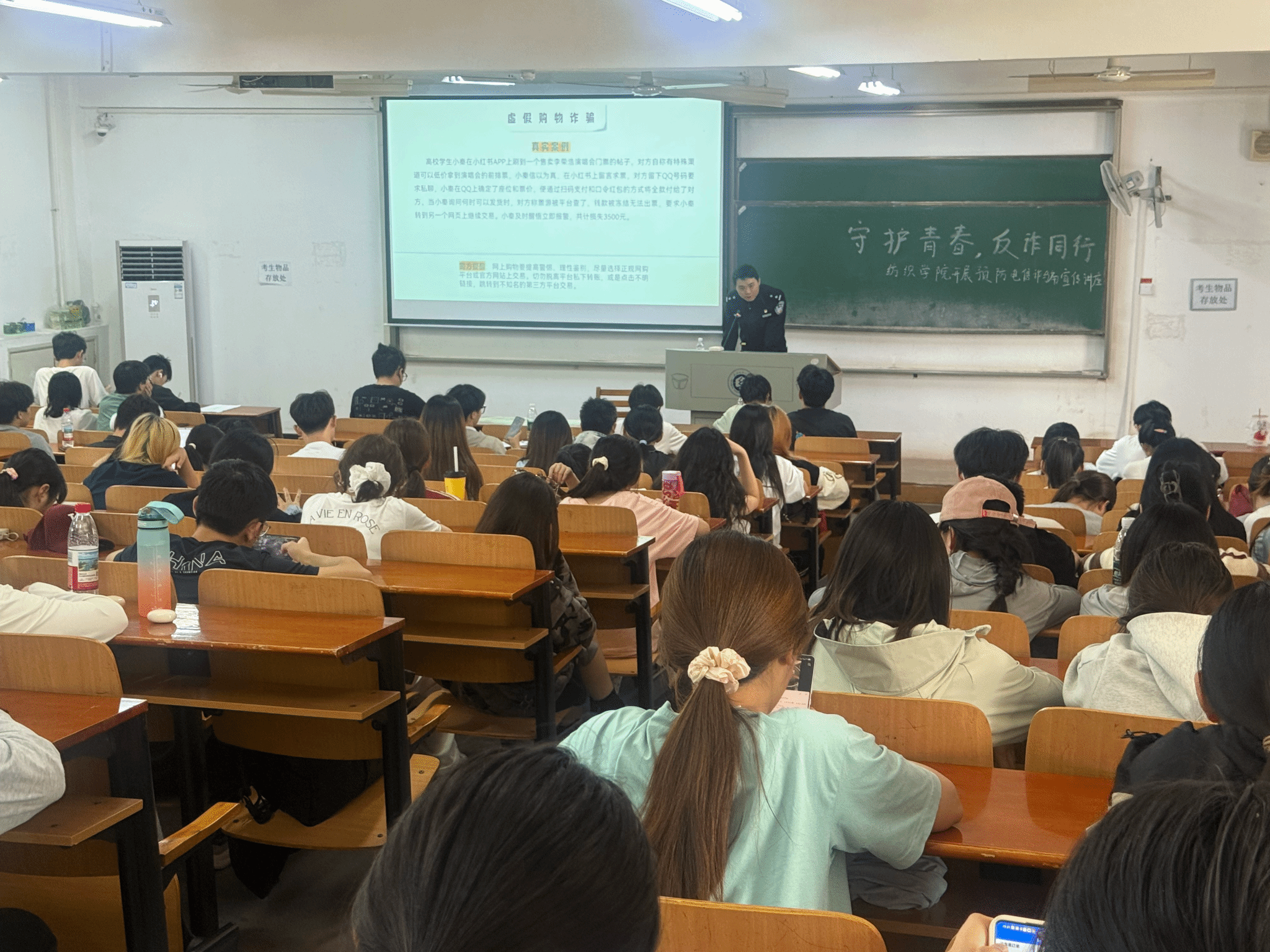 为进一步增强学生防范电信诈骗意识,筑牢校园安全防线,417日下午,国产直播 特邀庙山派出所伍文捷警官到校开展以守护青春,反诈同行为主题的防范电信诈骗宣传讲座。学院全体辅导员和学生代表共200余人参加讲座。