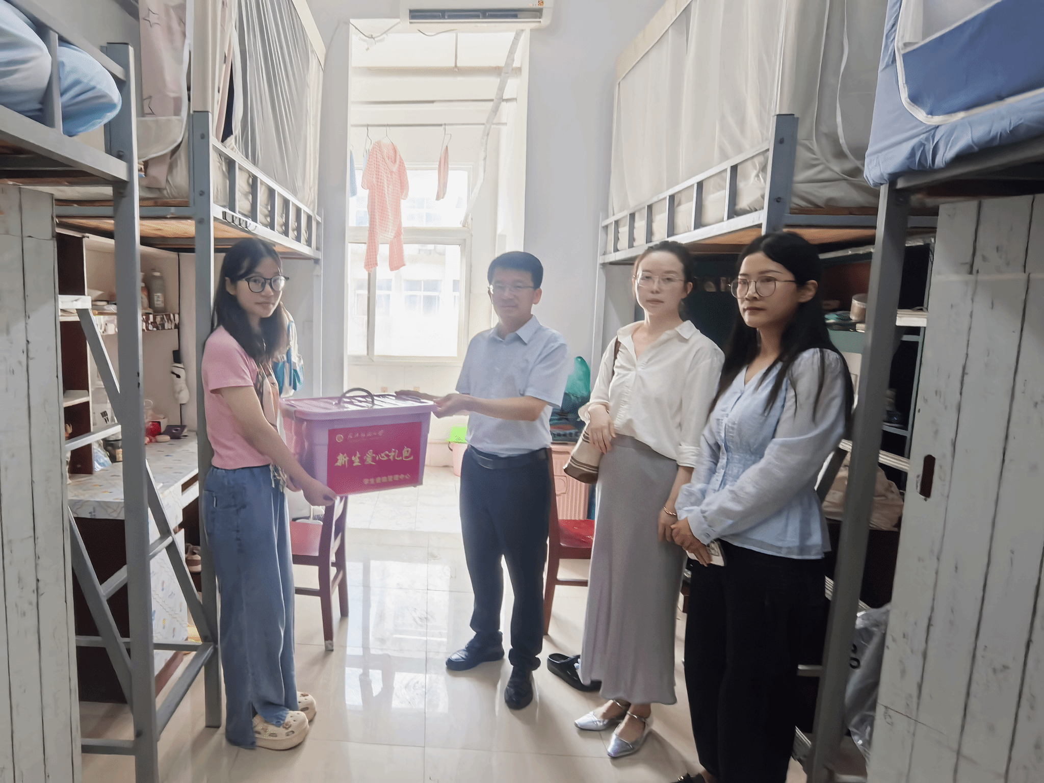 学院领导班子深入迎新一线,亲切慰问工作人员和志愿者,与新生、家长面对面交流。院领导还走访新生宿舍,为家庭经济困难学生送上“暖心礼包”,细致询问入住适应情况,传递学院的关怀与温暖。