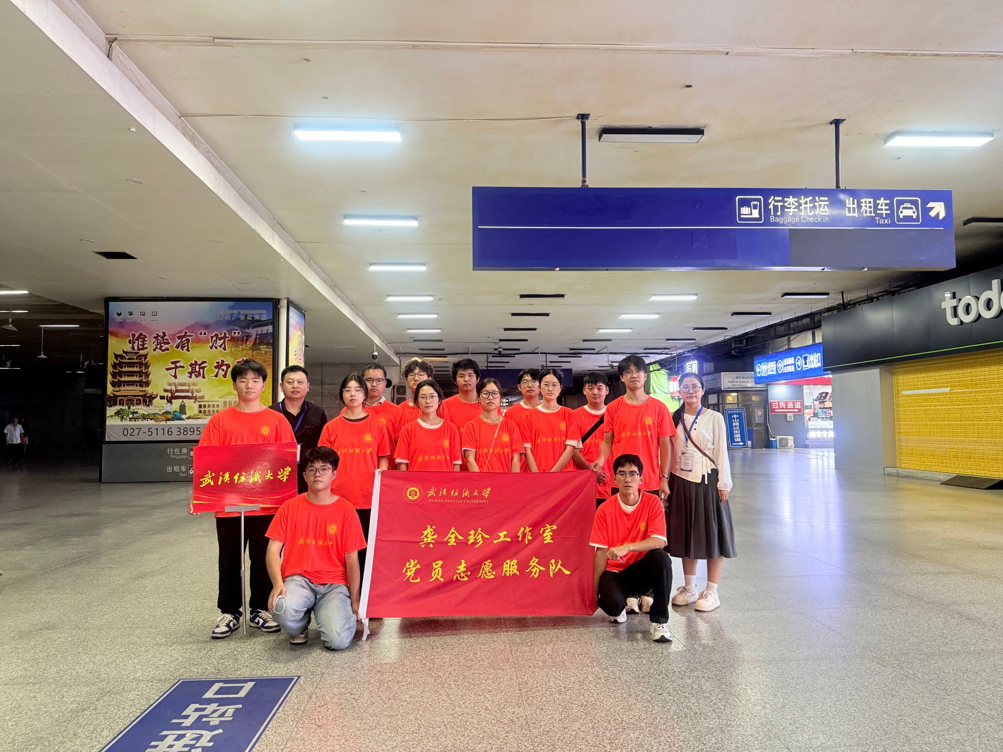 百余名“龚全珍工作室”党员志愿者活跃在车站、校门、报到点和宿舍楼之间,提供引导、答疑和行李搬运等贴心服务。他们以热情的态度和高效的协作,展现出纺织学子团结奉献、积极向上的精神风貌,成为迎新现场一道亮丽的风景线。