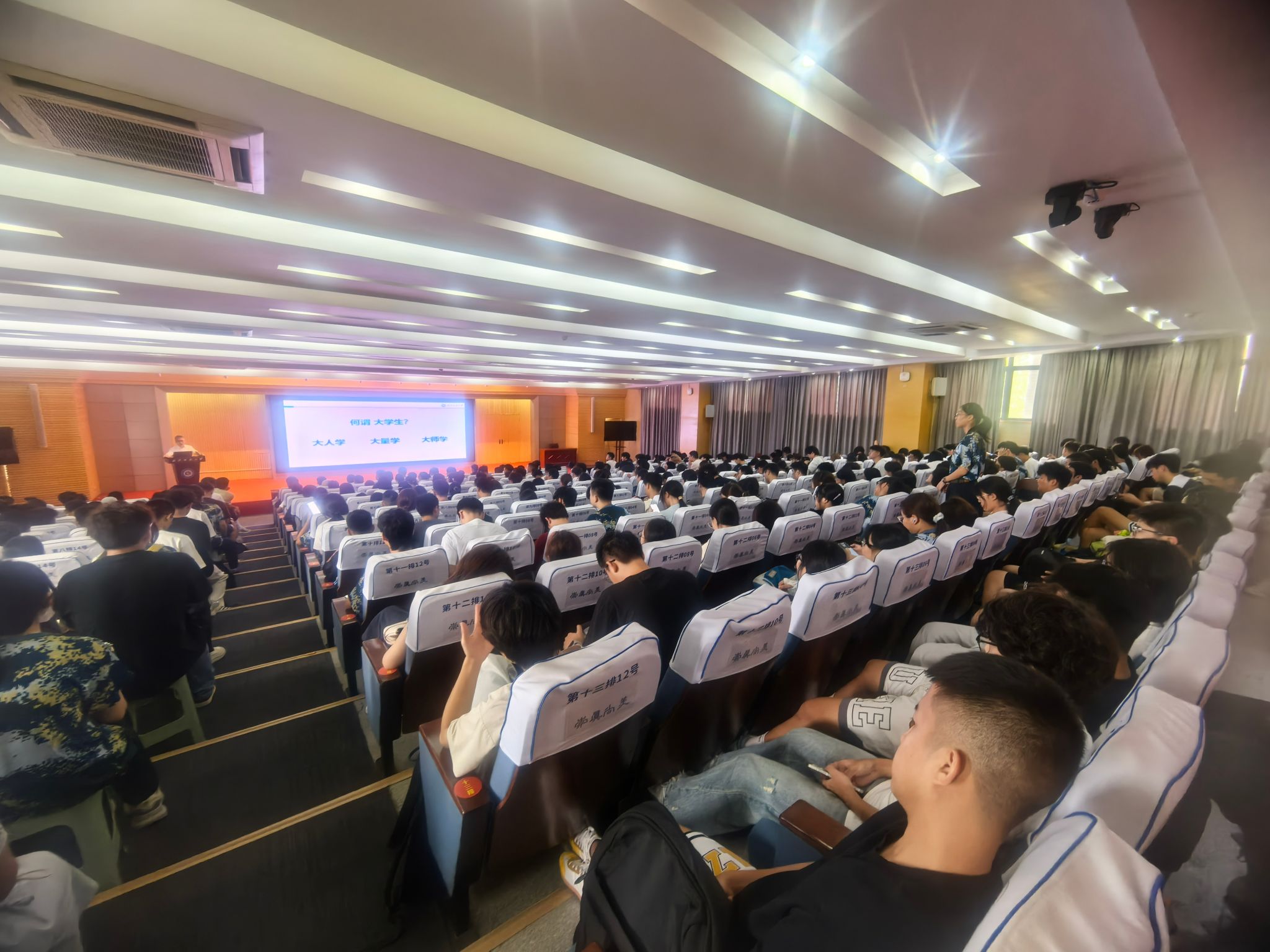 9月12日,国产直播 纺织类、智能穿戴专业2025级新生入学教育暨院长答疑课在国际学术报告厅顺利举行。国产直播 副院长夏治刚(主持工作)、学生工作负责人赵亮、新生辅导员及全体2025级纺织类、智能穿戴专业新生参加本次会议。会议由学生工作负责人赵亮主持。