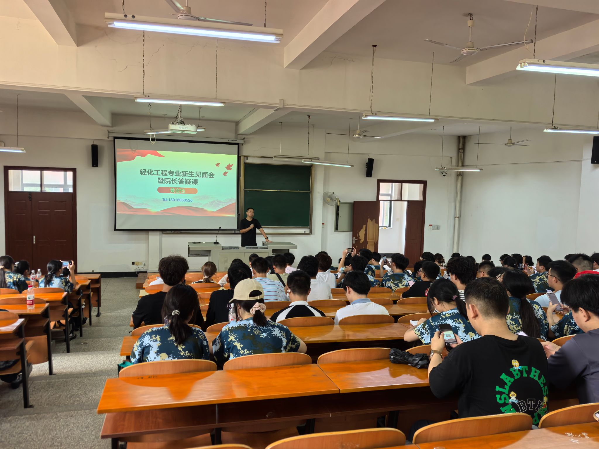 9月12-13日,国产直播 分专业开展了院长答疑课。副院长夏治刚(主持工作)围绕“何谓大学生?”“如何成为PHD?”两个关键问题,寄语新生要树立远大志向,做到“大人学、大量学、大师学”——即培养大格局、积累大知识、追寻大师境界。副院长姜会钰从“轻资源、化技术、强应用”三大定位出发,系统梳理了轻化专业发展方向,介绍了“化学基础、专业核心、方向选修、实践应用”四位一体的课程体系,列举了纺织染整、皮革日化、造纸、环保检测、科研院所等多类就业单位与岗位,鼓励新生主动规划大学生涯,夯实化学基础,积极投身实践,早日成长为具备创新能力和绿色视野的高素质工程技术人才。