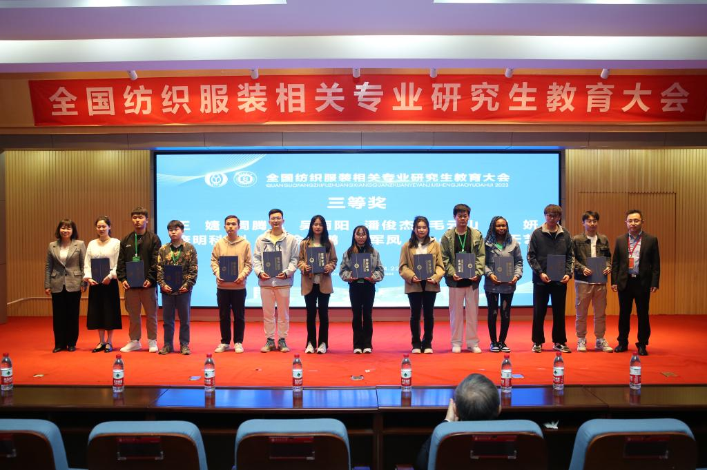 黎蓉教授、大连工业大学郭静教授、安徽农业大学许云辉教授、嘉兴学院张葵花教授等作为专家进行评审。研究生学术论坛结束后,全国纺织服装相关专业研究生教育大会为在研究生学术论坛中获奖的研究生颁发了证书和奖金。
