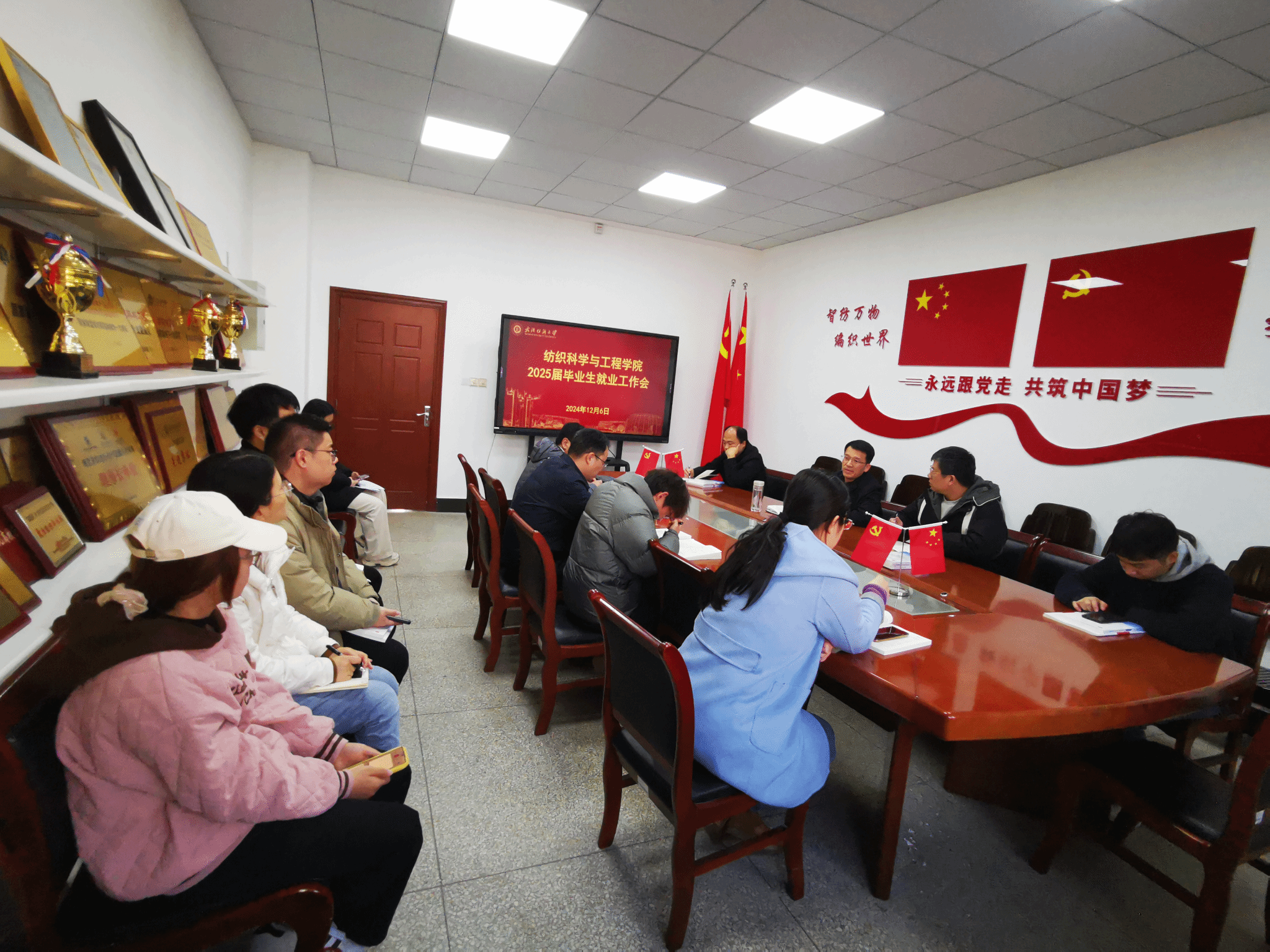 毕业生就业现状和可能面临的困难。他强调指出,学院领导班子带头认领就业工作任务,各党支部书记、系主任和辅导员要加强联动,发挥集体智慧与力量打赢学院就业攻坚战。要提高政治站位,强化责任担当,增强就业工作紧迫感,把毕业生就好业作为学院工作的重中之重。要认真摸清每名毕业生具体情况,对就业困难学生实施“包保到户”办法,精细化做好毕业生就业指导和帮扶工作。要深化学生、家长、教师、校友和学院利益发展共同体理念,强化创新人才培养、教育教学改革与学生高质量就业的逻辑关系,推动构建高质量人才培养-高质量就业-高质量招生的良性循环体系。