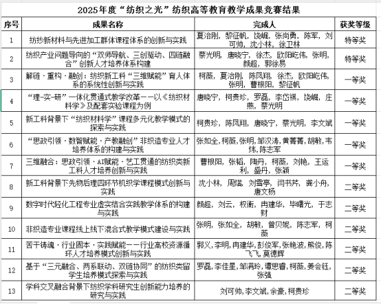 此次获奖不仅是学院在教育教学改革领域深耕细作的重要里程碑,更是推进“新工科”建设与省“双一流”学科发展的标志性成果。学院将以获奖为契机,加速推动成果的转化应用与示范推广,锚定纺织行业智能化、绿色化转型需求,深化AI技术与教育教学的融合创新,健全“产学研用”协同育人长效机制。展望未来,学院将始终坚守立德树人初心,以培养“具有国际视野、创新精神、实践能力”的高素质纺织人才为目标,持续优化人才培养体系,为服务国家纺织强国战略与行业高质量发展贡献更大力量。
