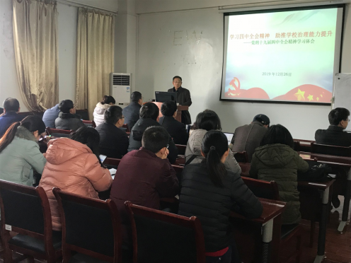 12月26日下午,国产直播 在8H502举行党的十九届四中全会精神宣讲会,学校宣讲团成员、纪委委员、学校办公室主任、主体办主任杜新年以《学习四中全会精神,助推学校治理提升》为题作宣讲报告。学院全体教职工参加了会议,学院党委常务副书记张红鑫主持宣讲会。 杜新年围绕十九届四中全会的重大成果和意义、感受“中国奇迹”,解码制度优势、在完善“中国之治”中坚定制度自信、以四中全会精神助推学校治理提升四个方面深入阐释...